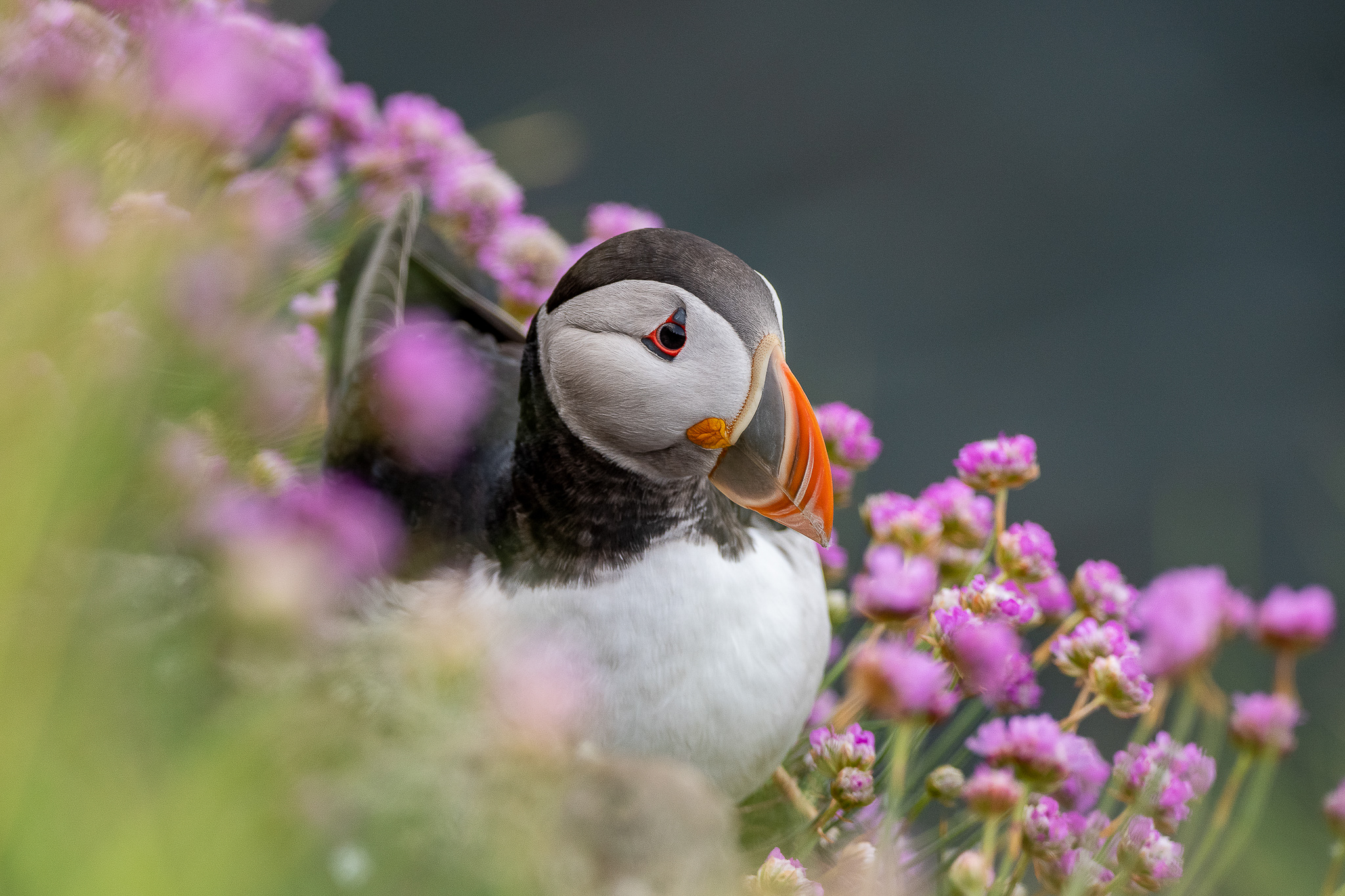 Puffin at Crawton – Not far from Stonehaven we have an amazing RSPB reserve home to thousands of seabirds which includes a handful of puffins. I was lucky to capture this wee guy sitting quite near the top of the cliffs amongst the purple colours of the Thrift.