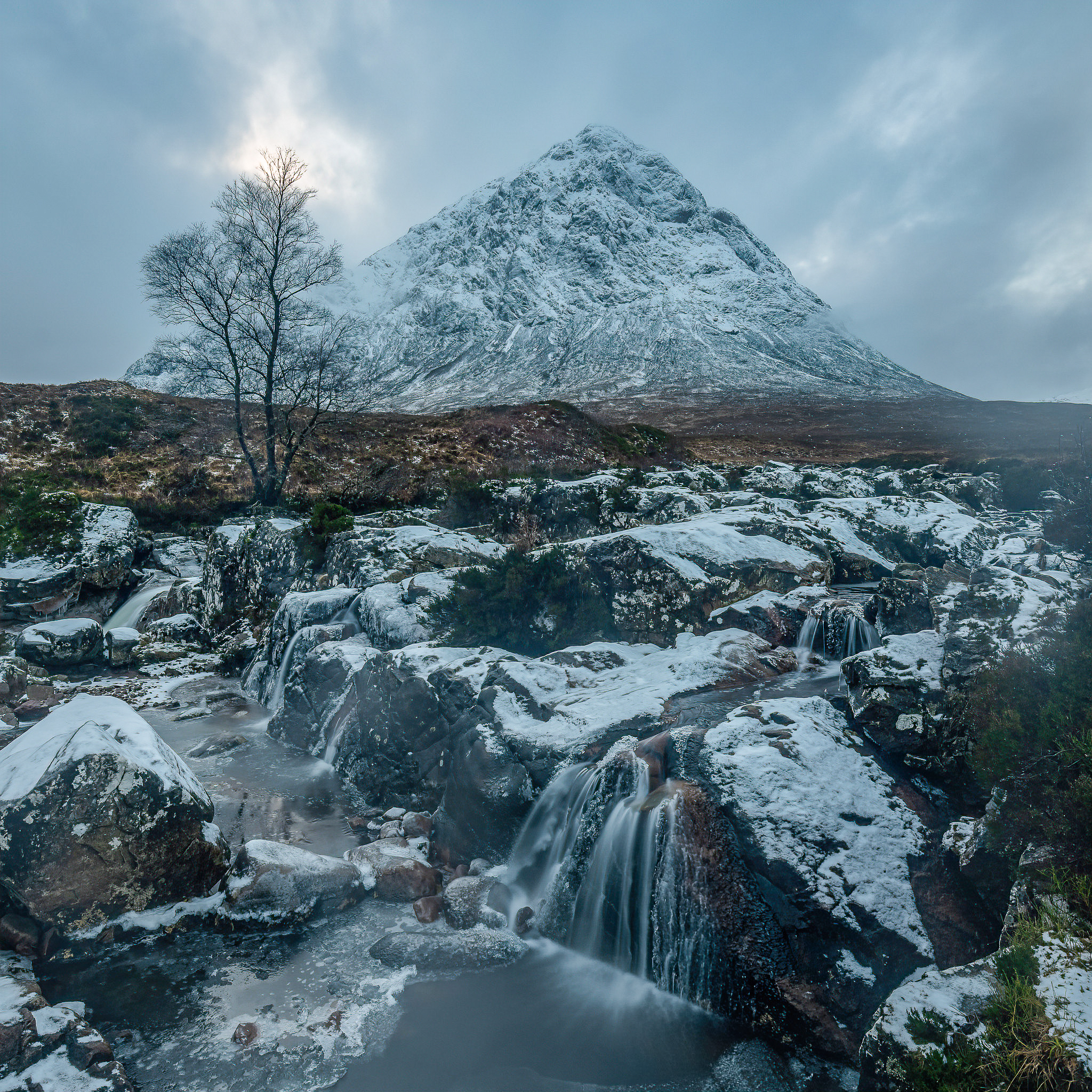Buachaille Etive Mor in winter – Buachaille Etive Mor is my favourite mountain to photograph. It’s imposing form at the side of the road makes it instantly recognisable and the wee frozen falls completed the scene.