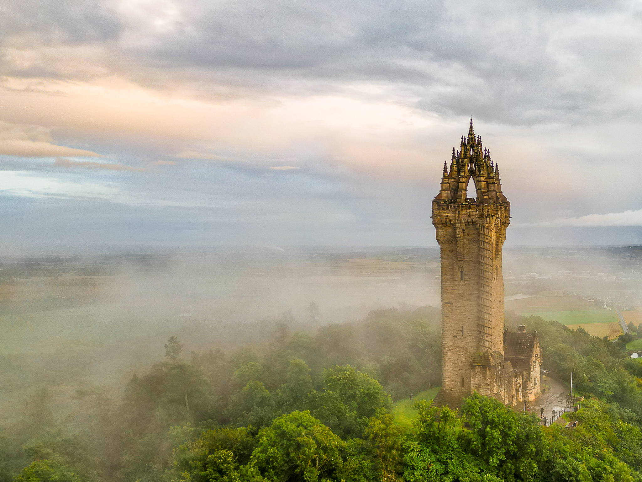 Wallace Monument, Stirling – Another imposing and instantly recognizable Scottish Landmark. We were driving home and luckily had the drone in the car and I was able to get a shot as trhe sun set and the mist rolled in.